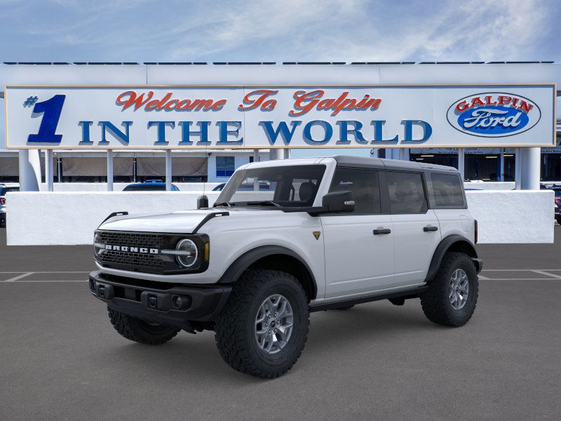Come down to Galpin Ford to see this beautiful New arrival. This 2025 Ford Bronco Badlands is an excellent vehicle at an affordable price! This Ford Bronco includes premium installed options such as hard top, black-painted, 2.7l EcoBoost® v6 engine, 10-speed auto transmission, black appearance package, equipment group 332a mid package and ford co-pilot360. Coming well equipped with options such as Heated Steering Wheel, Automatic Emergency Braking, USB Port, Four Wheel Drive, Sunroof/Moonroof, Dual Climate Control, Navigation System, Convertible, Keyless Start, Backup Camera, Heated Seats, Keyless Entry, Turbocharged, Tow Hooks and Blind Spot Monitor. With a OXFORD WHITE exterior, this vehicle will stand out from all the others. We are ready to answer any questions you may have. The Team at Galpin has outstanding customer service that will leave you completely satisfied. We know that you have high expectations, and we enjoy the challenge of meeting and exceeding them! Come by the dealership today to find the vehicle you have been searching for at the price you can afford!